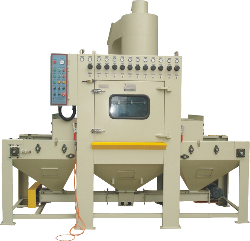 1、采用三角皮帶輸送工件,不會積砂,皮帶速度配合噴砂工藝要求可實(shí)現(xiàn)變頻調(diào)速;